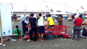 Gerobak jembatan merah karya Topas salah seorang warga kampung Akuarium dan peserta lomba gerobak memori